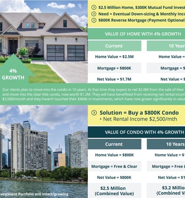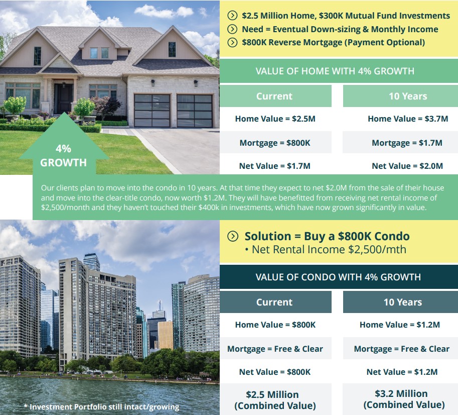 Solution: Seeking an alternative to downsizing and selling their family home, they explored Reverse Mortgages options. This allowed them to access their home's equity without selling, providing a reliable source of income. While there are many ways that a reverse mortgage can help provide income for the Smiths, they were particularly attracted to a strategy called proactive downsizing.